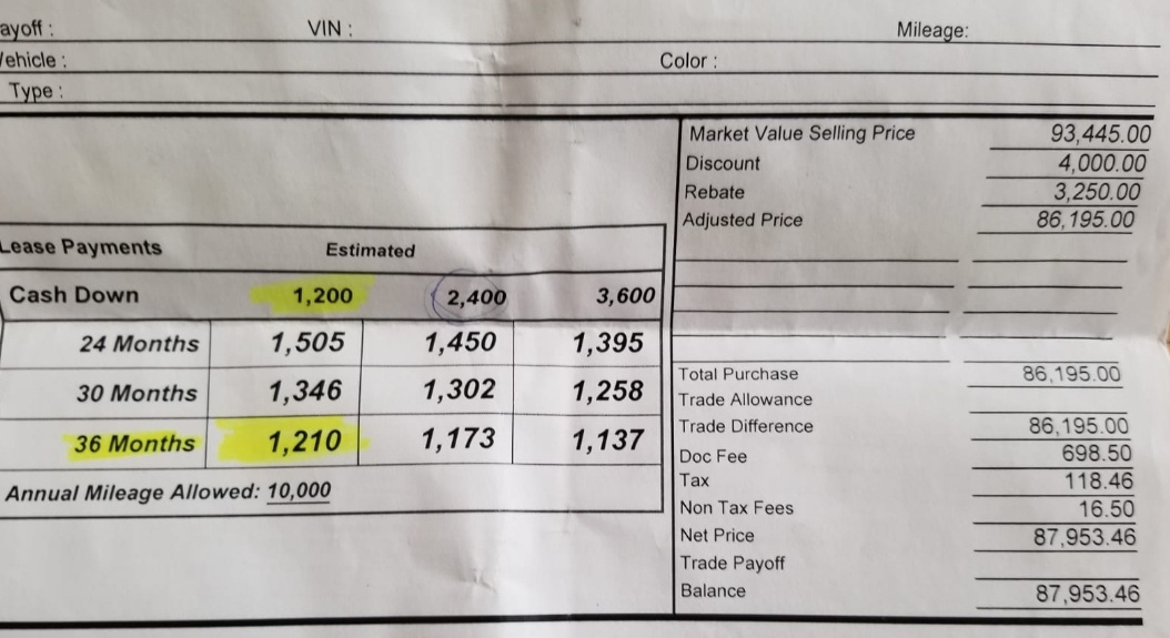 All this: year make model? Did you verify residual/MF/incentives with Edmunds? Calculator link?