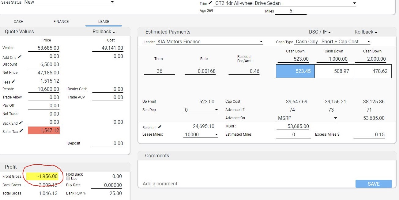 So they have the rate marked up on the deal, so they’re are losing the ~$1900ish on the front end but making ~$3k on the rate. In reality they are keeping the hold back, which I assume is ~%3 of msrp