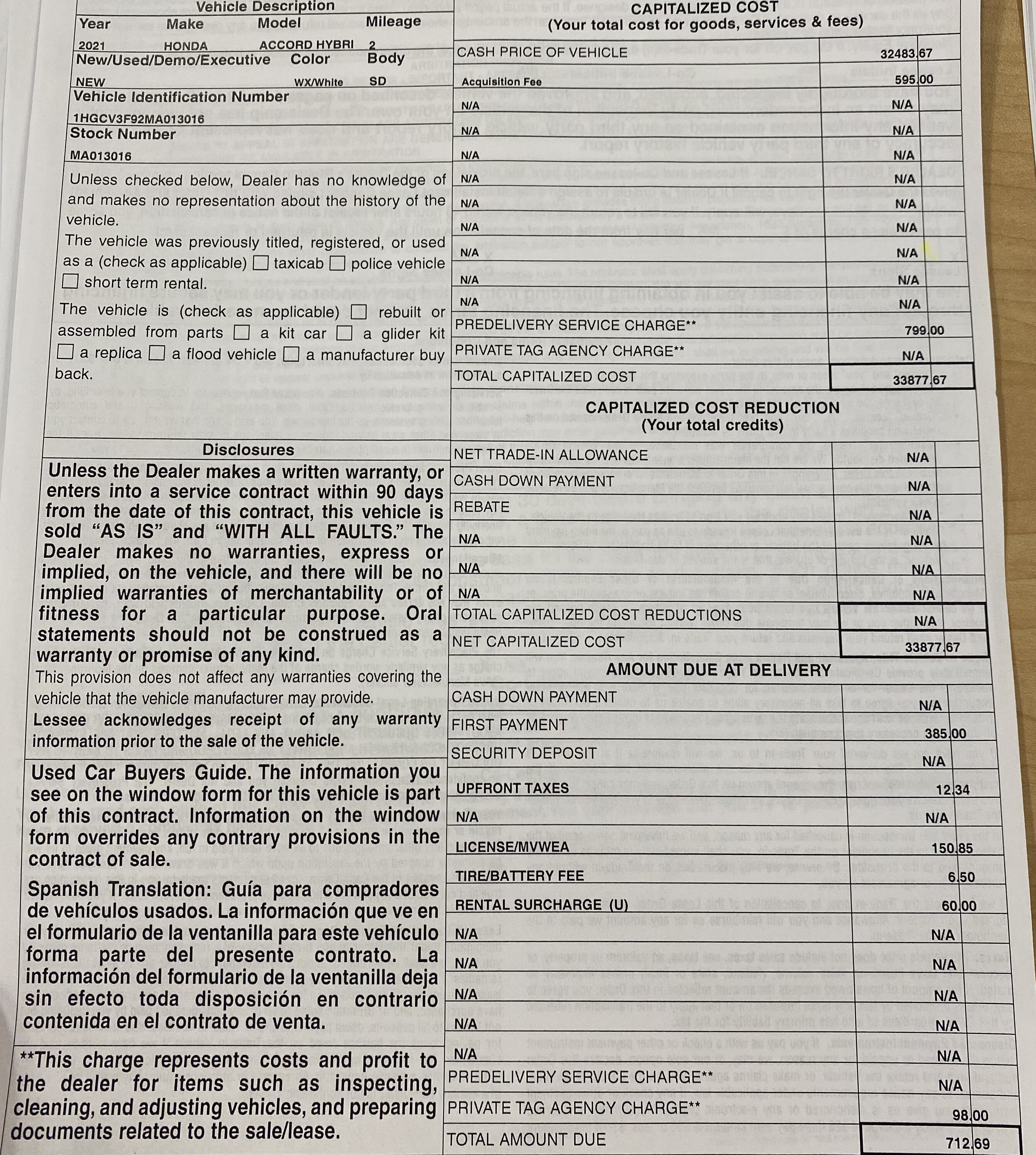 I made sure to include I did put first pay at “DAS” in my post. But as far as calculator goes I couldn’t get that to add up. As far as any add ons- they took off the add on package (doesn’t show on contract- wheel locks. tint. mud flaps. etc)… But a $799 destination fee does appear separate on contract.
