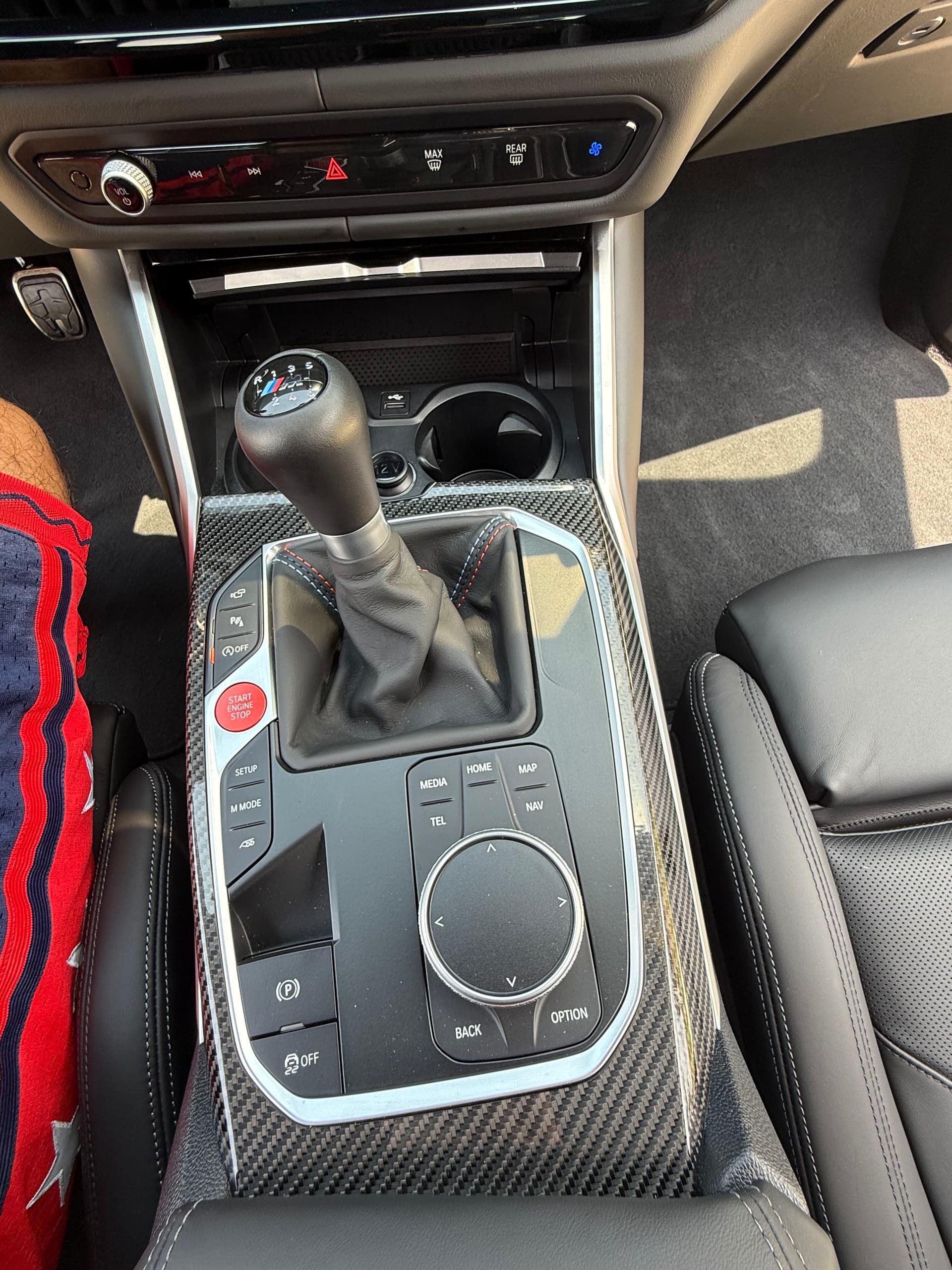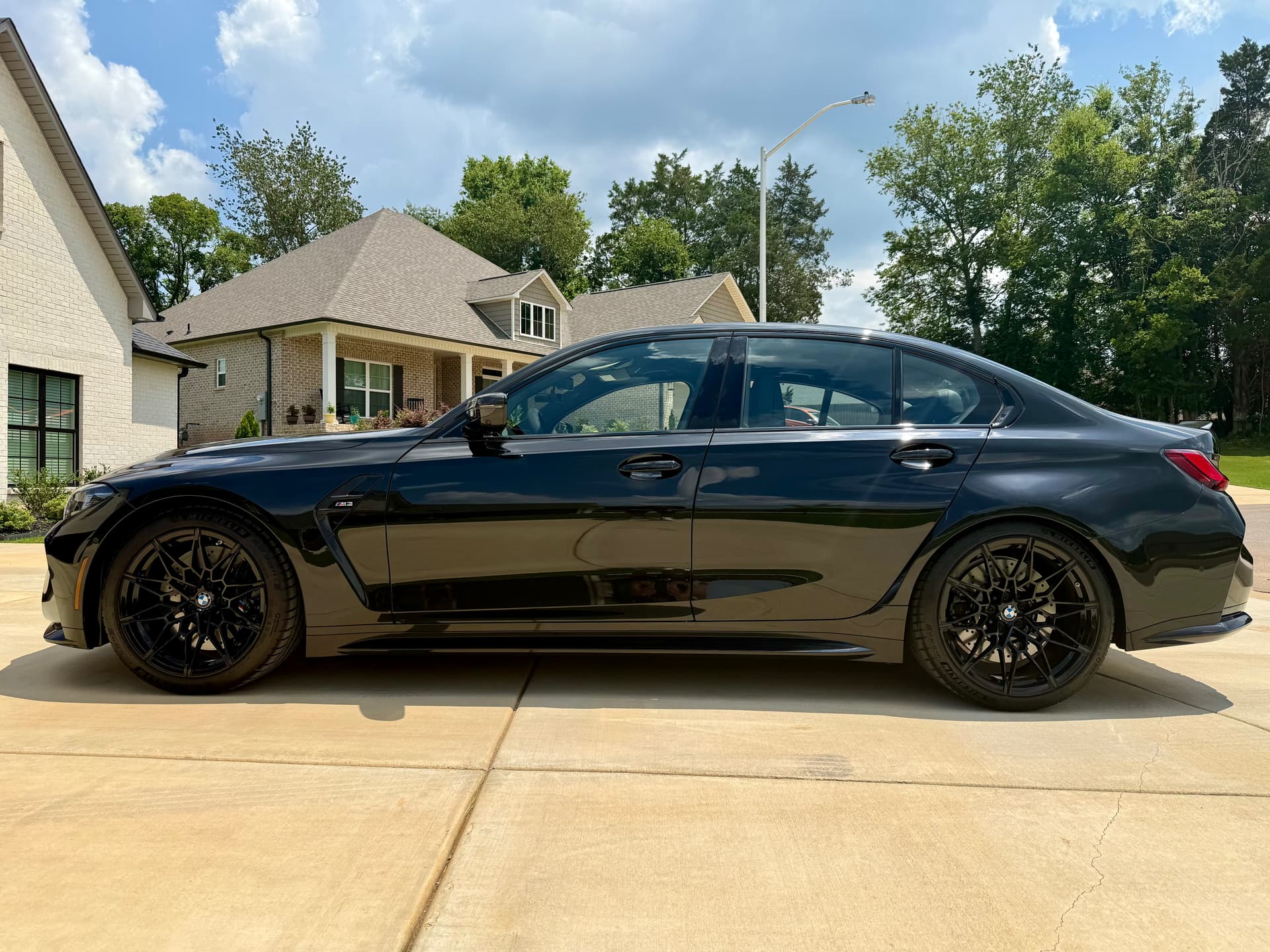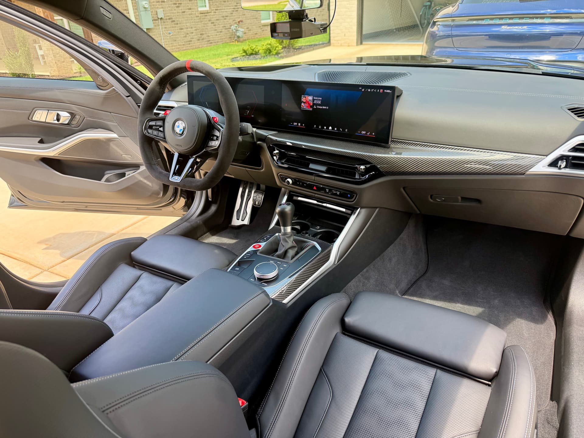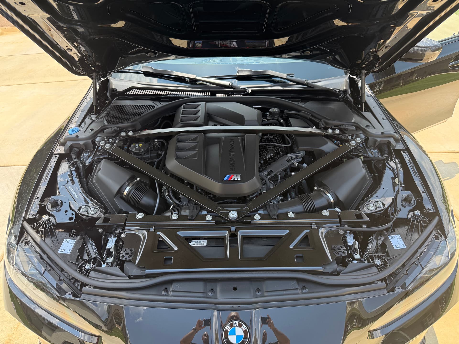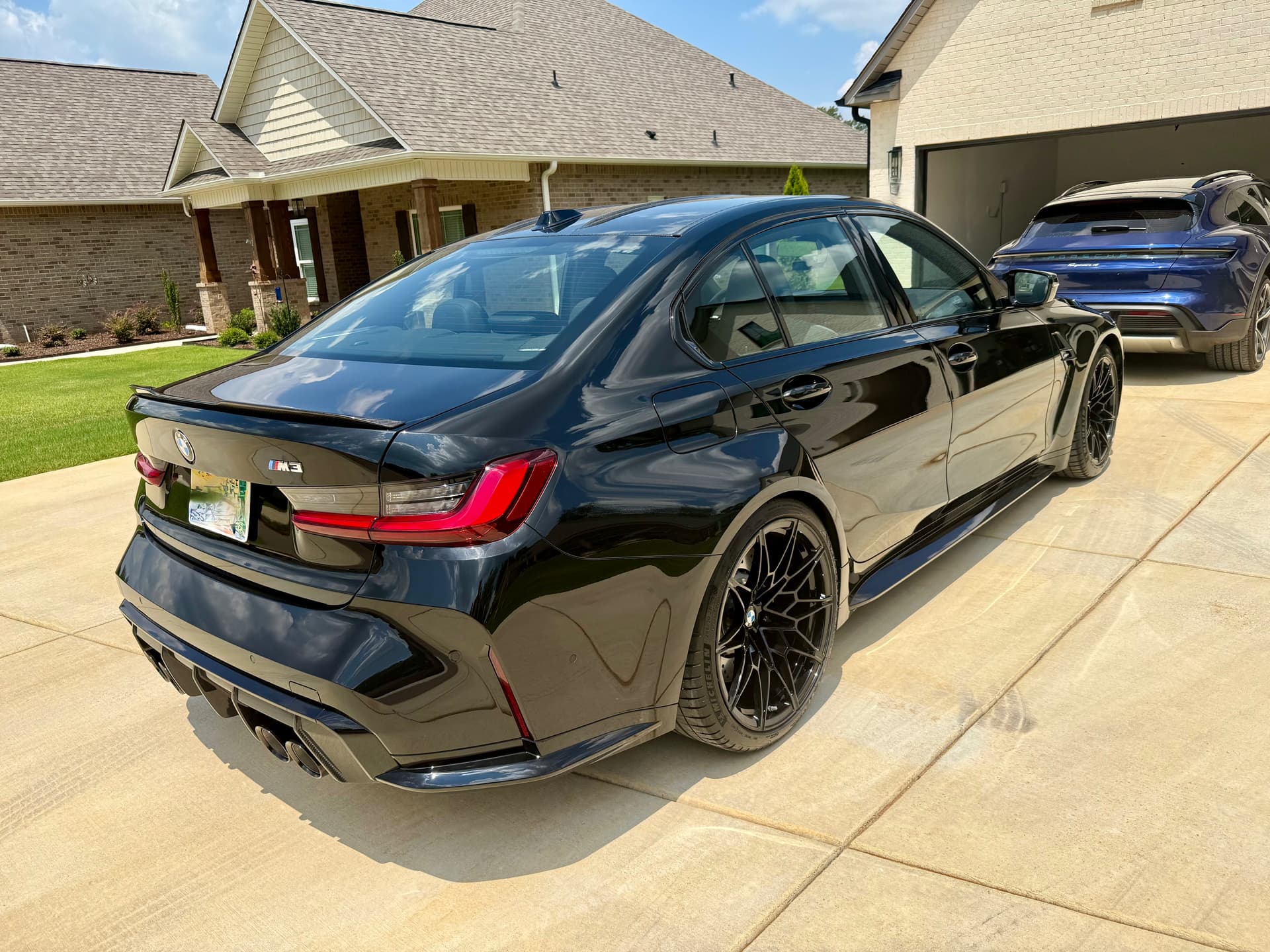 You’re looking at a pretty loaded '25 Black Sapphire Metallic M3 Base in excellent condition. Comes with the exterior carbon package, carbon roof, FULL leather and the port installed M Performance height adjustable suspension (it’s under factory warranty). A couple of very small and almost unnoticeable rock chips/nicks on the hood and front/rear bumper, but other than that, this thing is in great shape. No accidents. Never been smoked in. No pets. My kid only drank water in this thing.