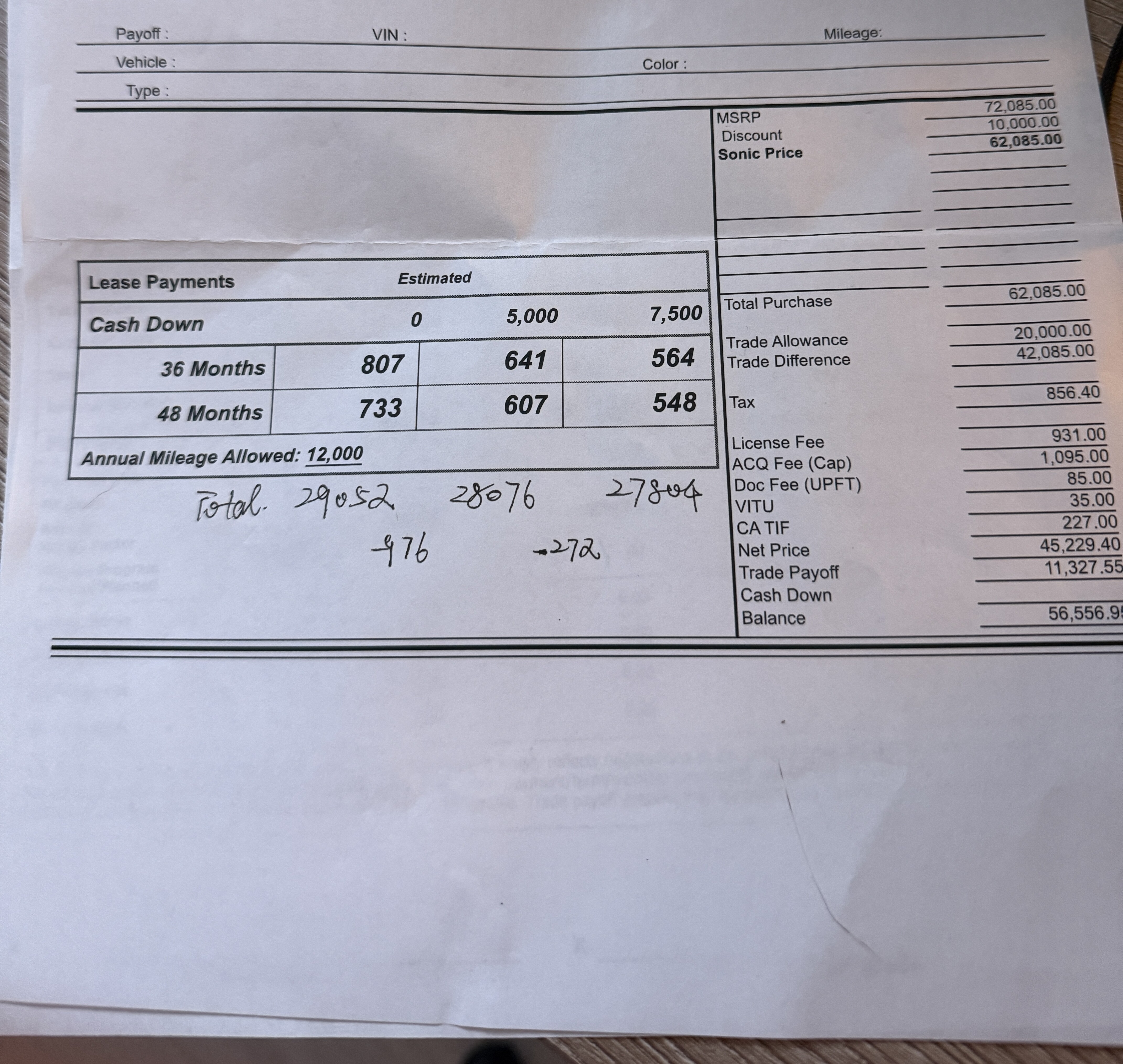 Yeah I agree. Saw broker with $389 monthly with $3000 DAS with some easy search. Will see if I can negotiate with the dealer or go straight to broker instead. Thanks Hawks!