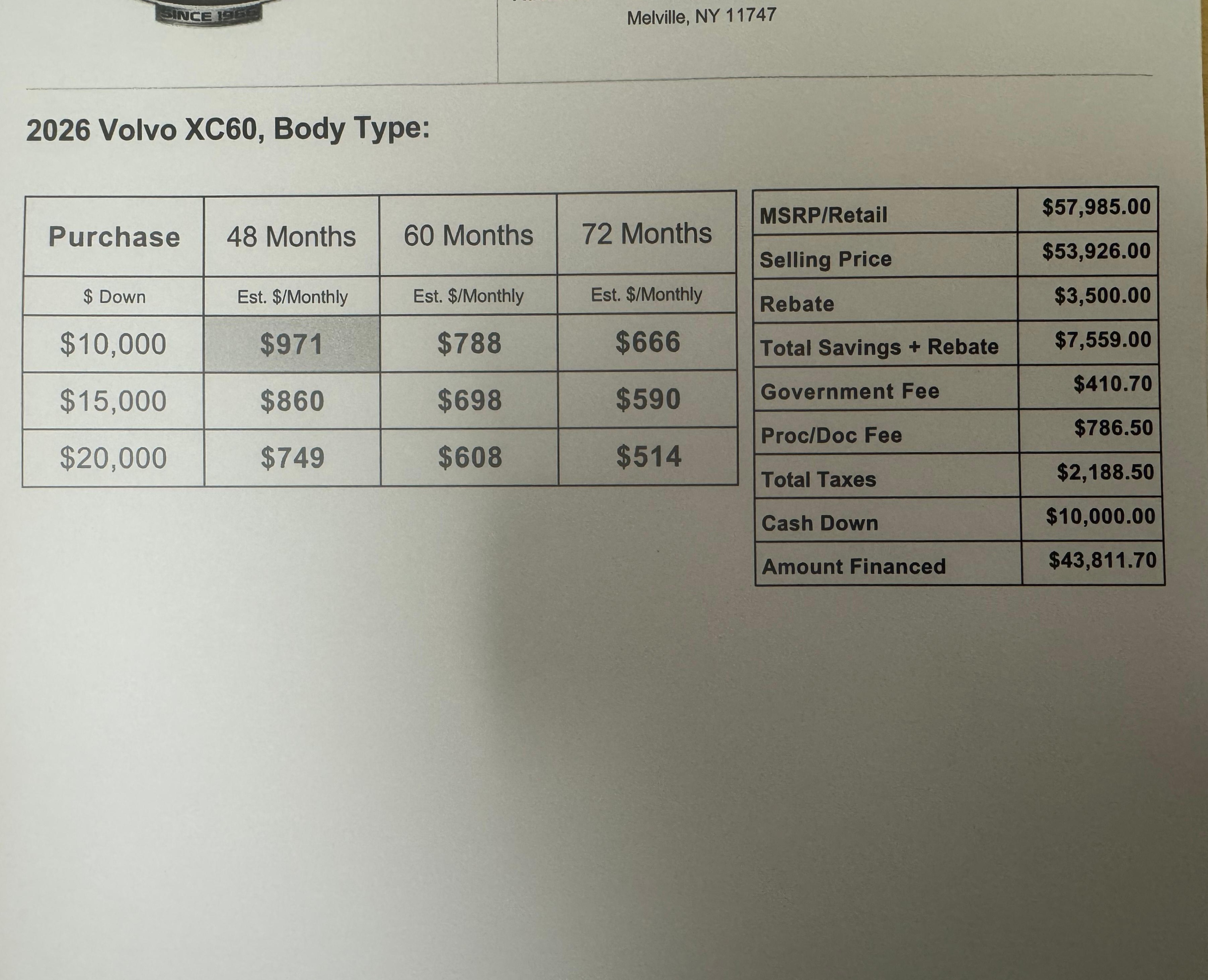 Are you sure about that? Are you registering the car in NY? What is your sales tax rate?