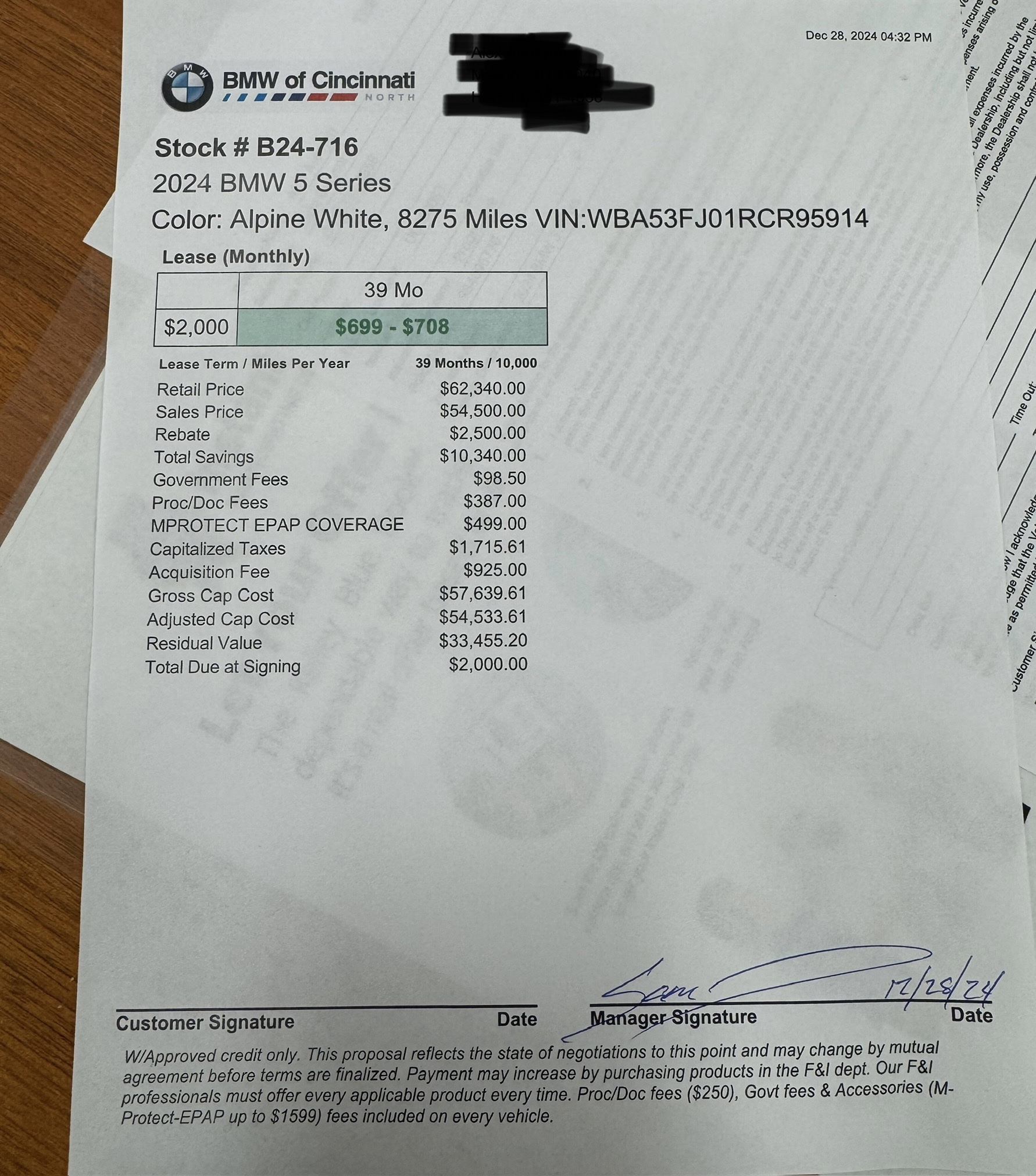 Hello everyone I am working a deal on a 2024 BMW 530i in Cincinnati Ohio and I feel the lease number is to much. This is my first time and I don’t have anyone for guidance. $700 monthly seems steep for this. Ill add a photo of the terms. I am unaware of what the MF is here.