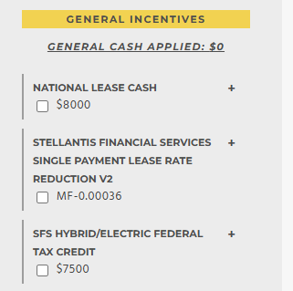 I was looking at a Rubicon X but saw Rubicon 4xe at the same price but of course there’s an EV lease incentive so it should be $7500-8000 cheaper. These two don’t stack, right? Also - which is better SFS or CCAP lease?