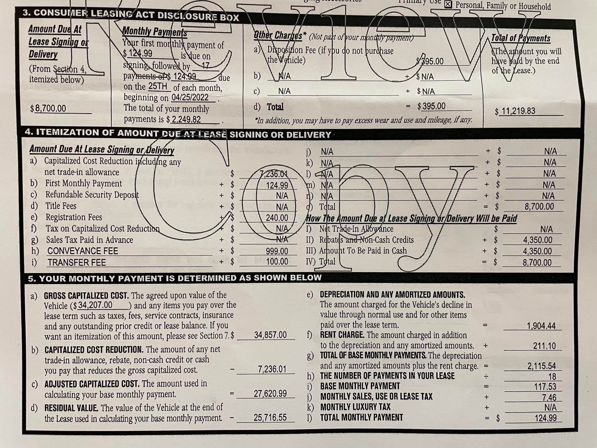 jesus that looks way over sticker if your rebate is $2250. contract also looks really off. i see where the 4350 rebates came from. looks like they capped the car at 5k over sticker and then used the same 4350 as “cash”.