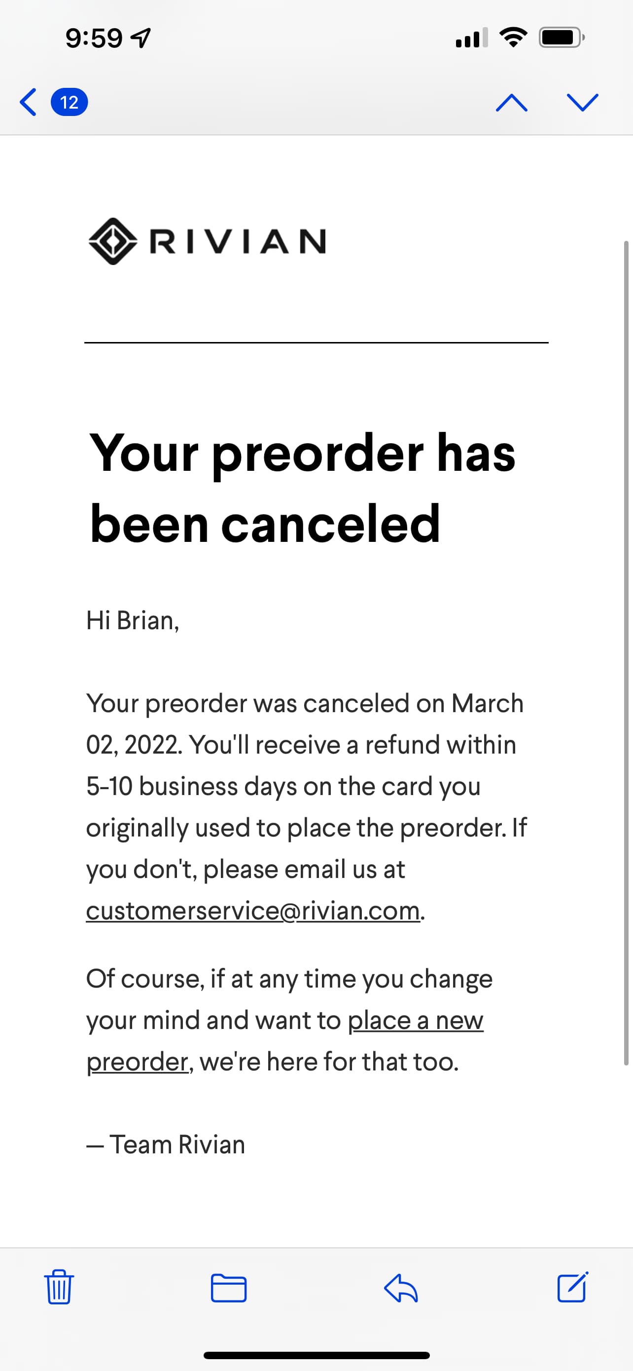 I don’t have a Rivian pre-order althu I have been seriously considering one. I interviewed there a while back and was impressed by what they had achieved back then. For me now, the trust is completely gone. How can I know they won’t pull a trick down the road? What happens for service or anything else? its an expensive purchase, and I want to know the company will stand behind me if something were to happen, and I just don’t believe that anymore.