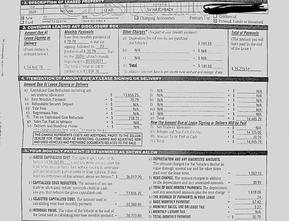 I am loving seeing that $30 in cash on the lease contract😁