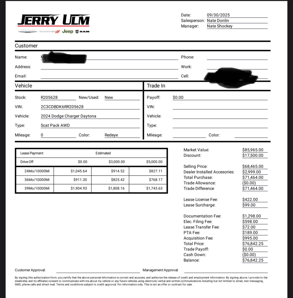 MSRP: 85,965 (Top trim level because I wanted cooling seats, black rims, red calibers, and Driving Assist. Couldn’t find a ‘25 spec like this so went ‘24)
